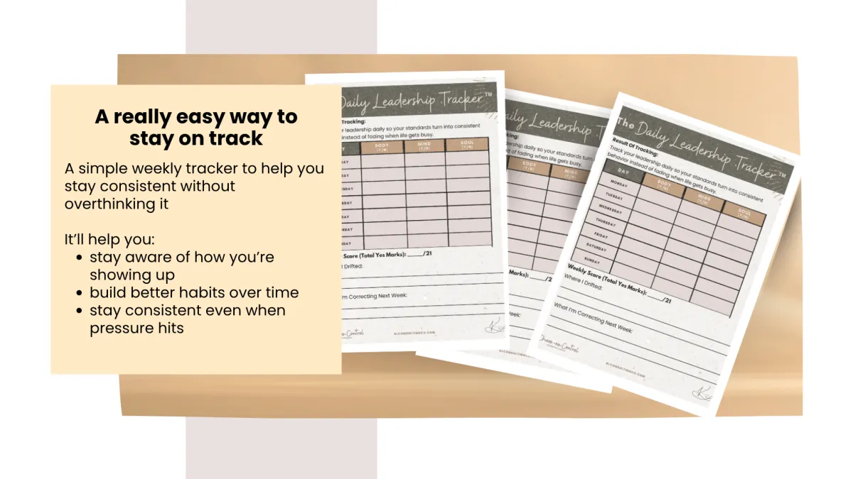 The leadership trackers are designed to help you apply the framework daily over the following weeks to instill habits into your new reality.